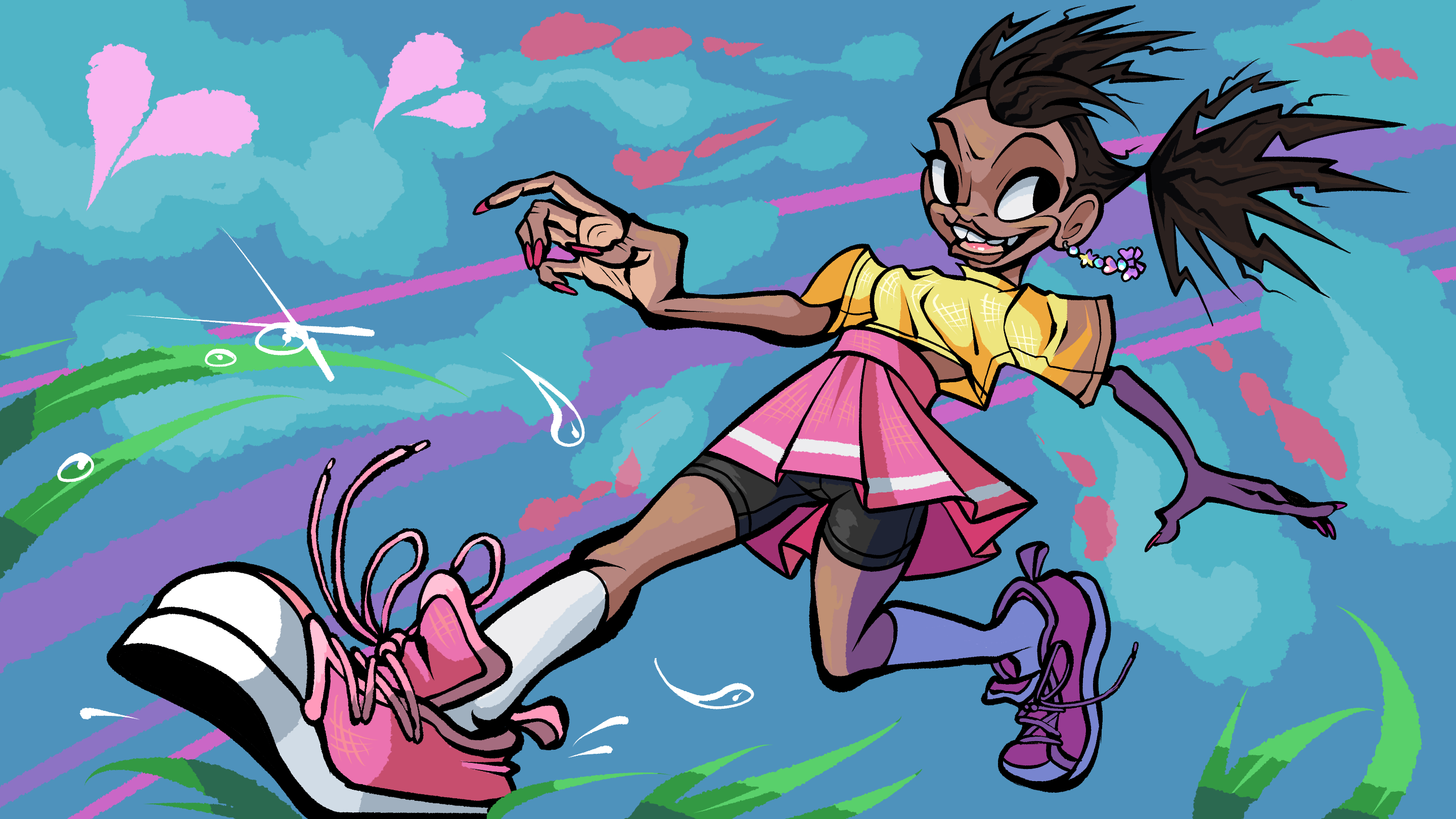 Warm-brown skin and an athletic build from playing with her siblings and being active in the neighborhood.